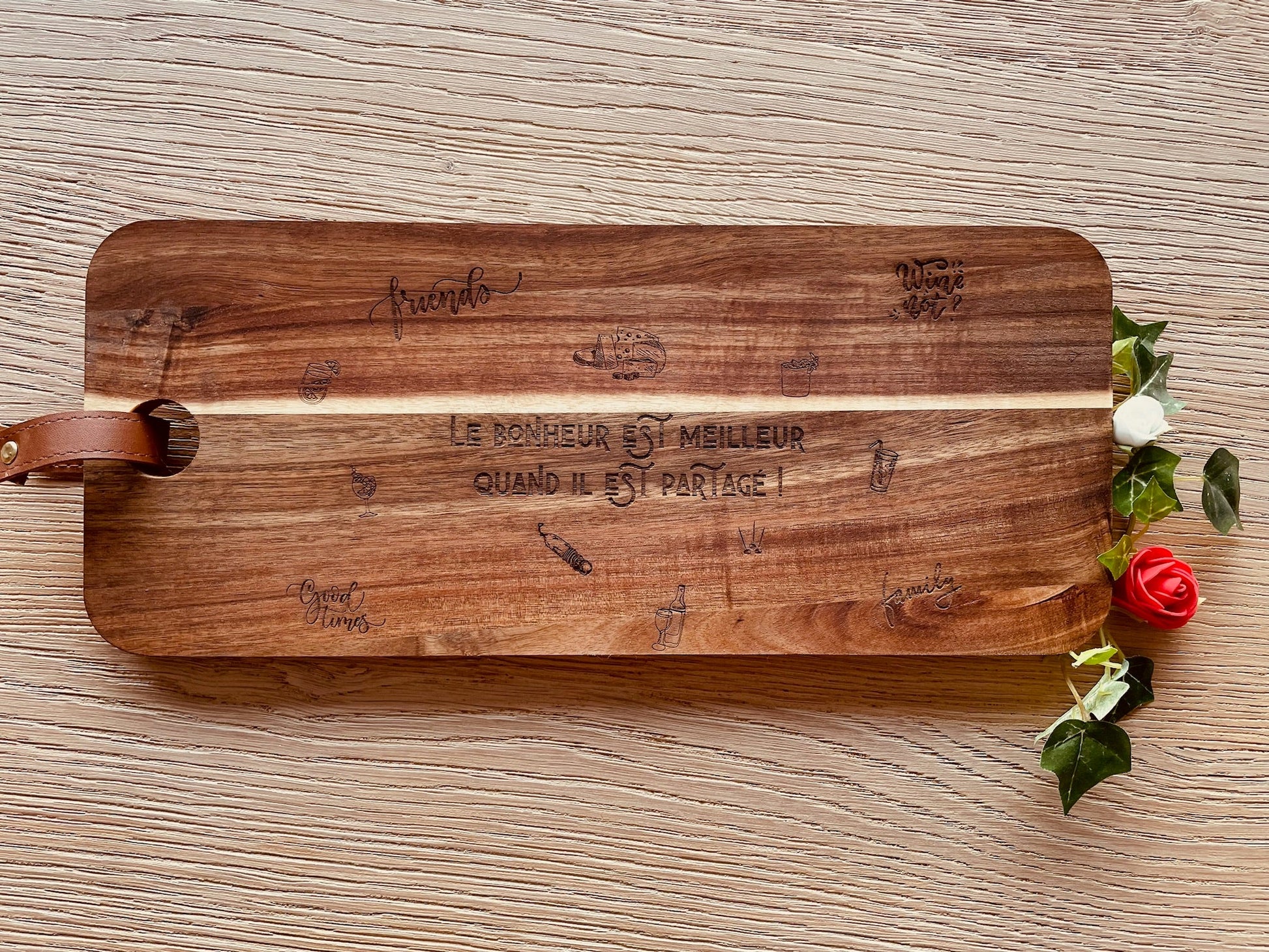 Dimensions : 40cm x 17cm - La disposition peut changer en fonction de la planche. Le bois est un matériau naturel, le résultat peut donc varier d'une planche à l'autre.