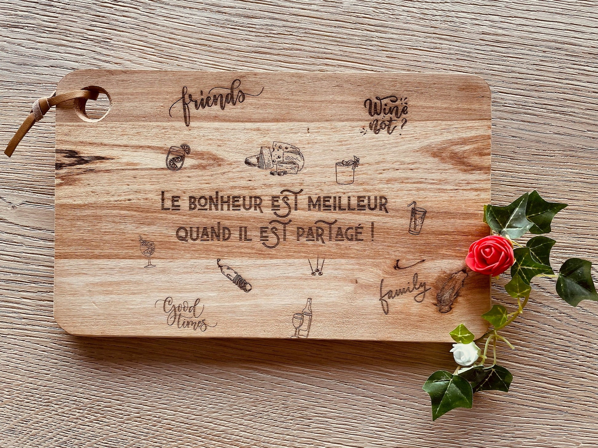 Dimensions : 34cm x 21cm - La disposition peut changer en fonction de la planche. Le bois est un matériau naturel, le résultat peut donc varier d'une planche à l'autre.